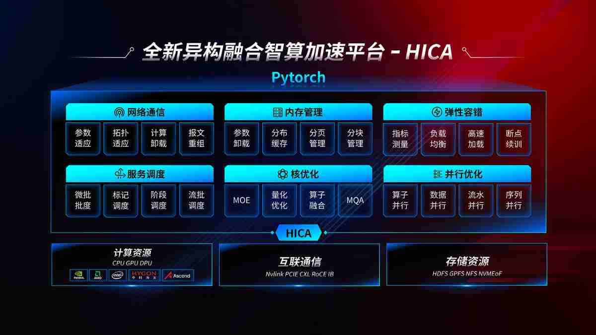 通过自研的服务层、、中间适配层、、、以及调度编排算法,,,,采用数据并行、、模型并行等多种并行方式,,,,把并行计算任务进行有效的分解,,使其分别由相应的软件栈和算力资源来承接。。当GPU资源变化,,HICA可以实时动态调度计算子任务并调整模型拓扑和架构,,,,以充分聚合各种算力资源。。