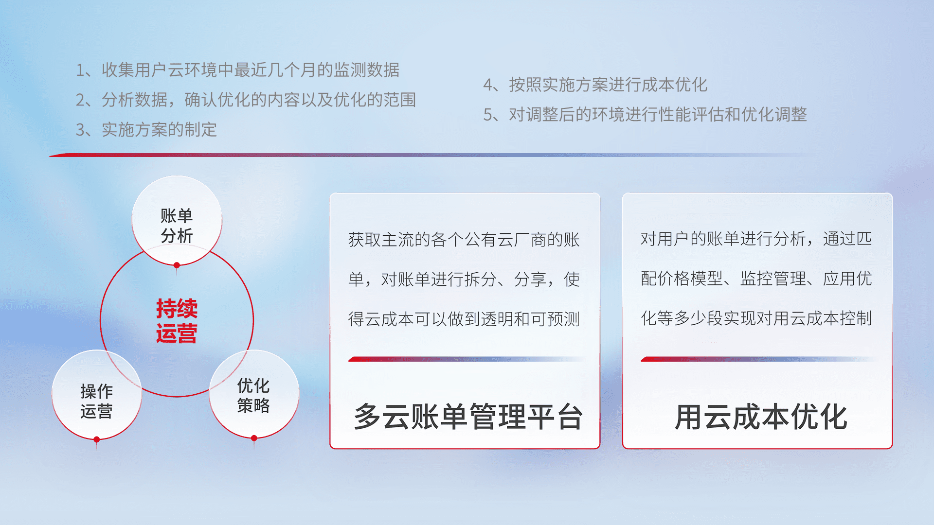 监控业务系统资源开销,,,对资源的消耗精确计量,,实现费用的透明化管理,,,,不断提升资源使用率,,调整资源购买方式,,,,降低资源费用成本,,,,用云成本可预测、、用云费用可优化,,,,云资源配额有据可依。。